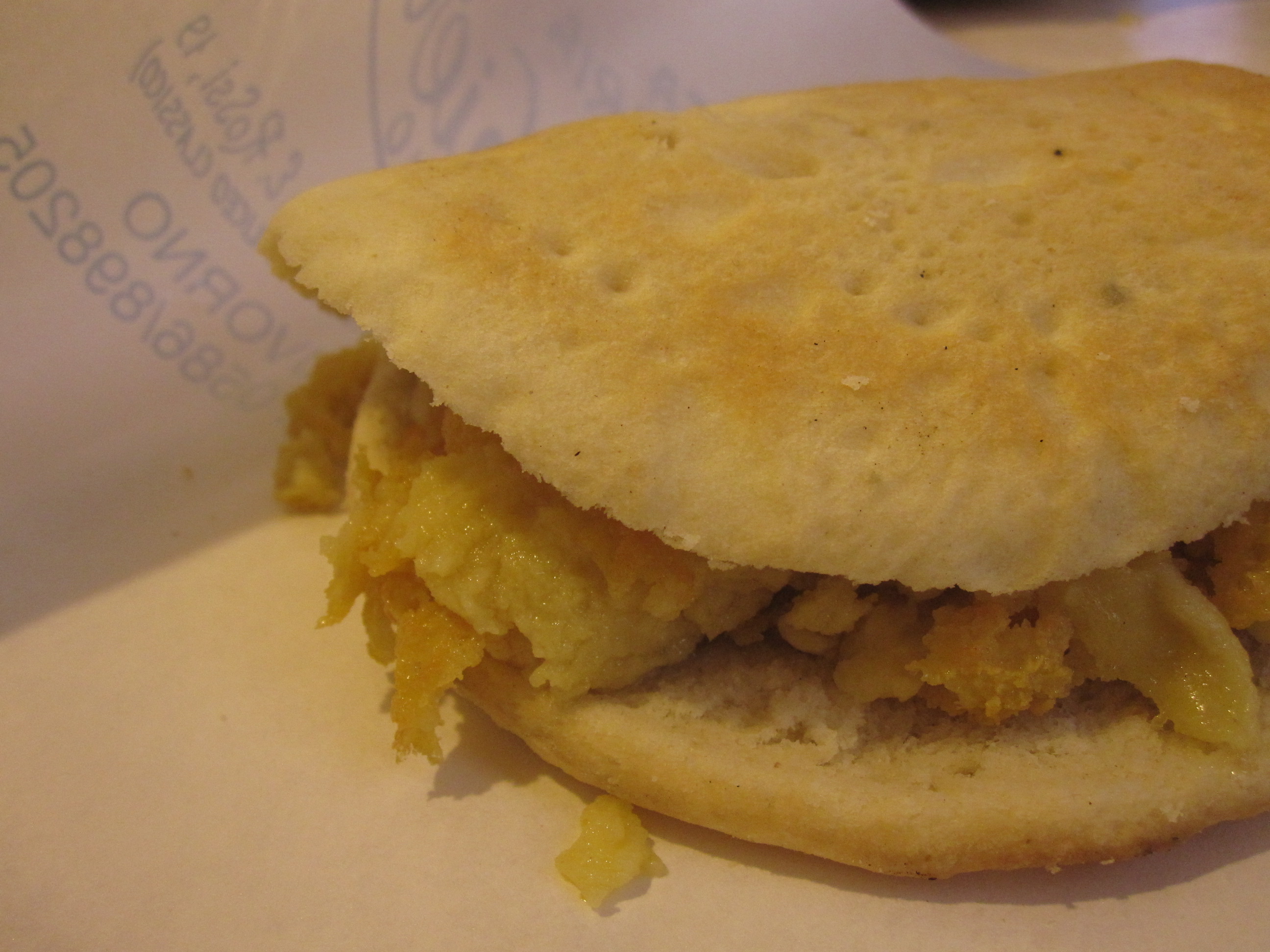 In dieser kleinen Pizzeria (eher Pizza-Imbiss) backt eine Familie seit 1946. Neben Pizza haben sie ihre Spezialität „Cinque e cinque“ – Cecina & Panino genannt. Cecina, anders genannt Torta di ceci, sind gebackene Kichererbsen. Das gibt es ziemlich überall in der Toskana. Die Livornesen haben es aber noch weiterentwickelt (nur mit Hilfe von Panino) und dieses tolle livornesische Sandwich erfunden. Deshalb ist es okay, wenn es hier eben „Cinque e cinque“ – 5 & 5 – heißt und im Rest des Landes Torta di ceci.